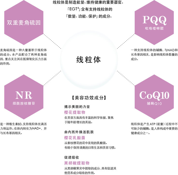 我们研发了含有日本产榆黄菇提取物粉末,以及可高效吸收的发酵型麦角硫因的双重配方保健品「EGT²」。