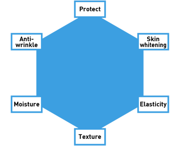 Promotes collagen synthesis in the dermis layer to give skin firmness and reduce wrinkles. It also suppresses melanin production, preventing spots and freckles, leading to radiant and glowing skin.
