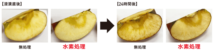 水素処理のりんご断面はほとんど変色なし!