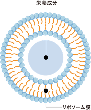 リポソームとは、リン脂質からできた多層で微小なカプセル。クルクミンを細胞膜に似た構造のリポソームで包むことで、吸収率が112倍も増加。効率的な体内吸収が可能になりました。