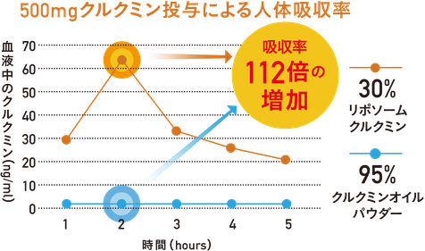クルクミンのリポソーム化で、圧倒的な吸収率の増加を実現。
